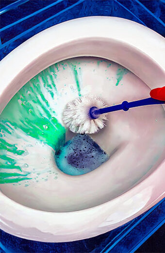 High-pressure water jetting of sewer lines connected to toilets, effectively clearing roots, grease, and stubborn build-up beyond the fixture.